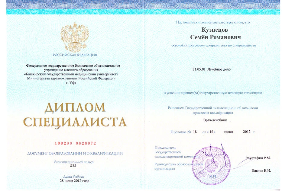 • 2012 — Башкирский Государственный Медицинский университет (лечебное дело)